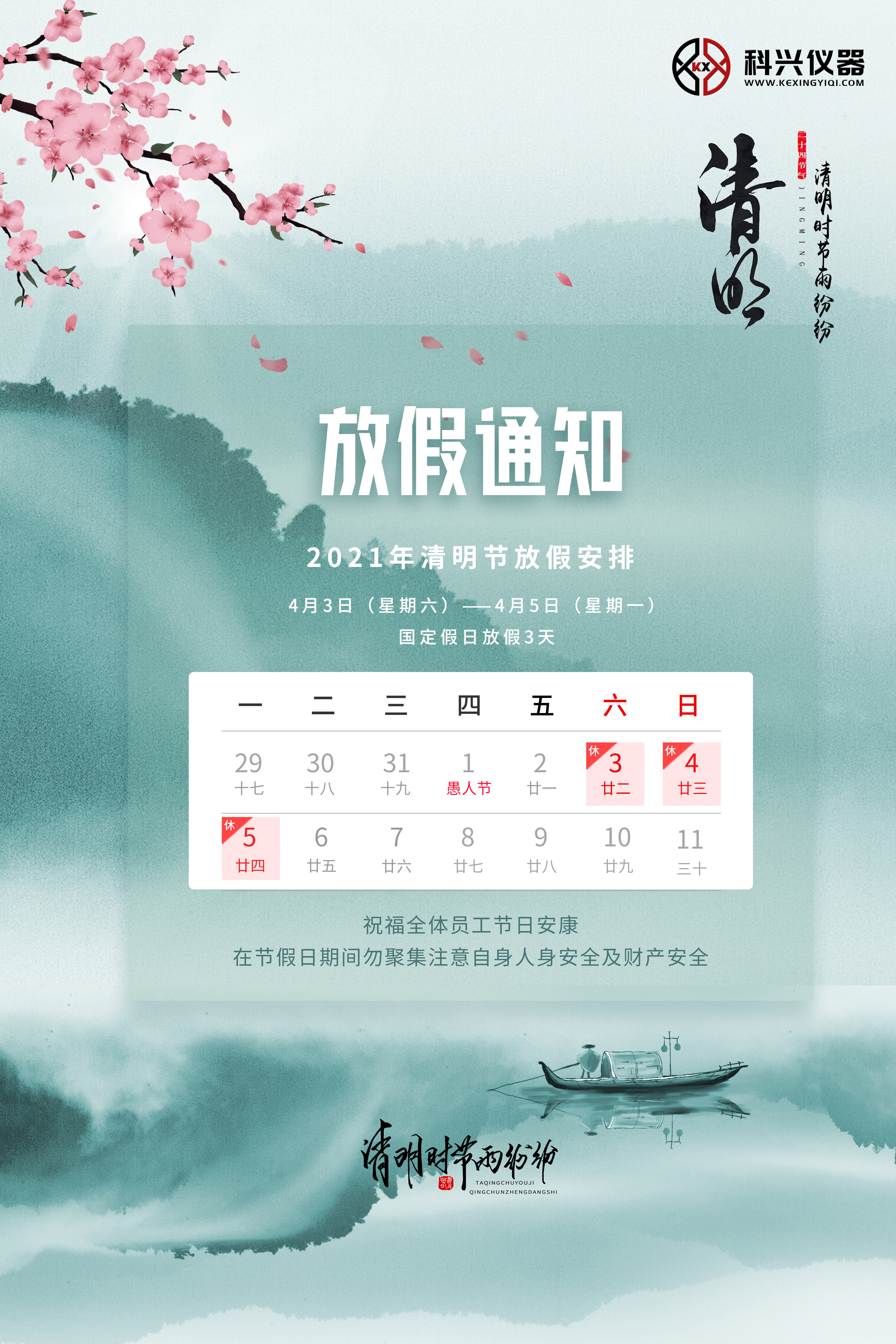 科興儀器2021年清明節放假通知