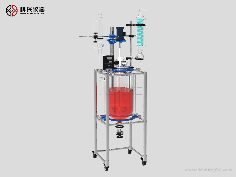雙層玻璃反應釜為雙層玻璃設計,內層放入反應溶媒可做攪拌反應,夾層可通上不同的冷熱源(冷凍液,熱水或熱油)做高溫反應或低溫反應。